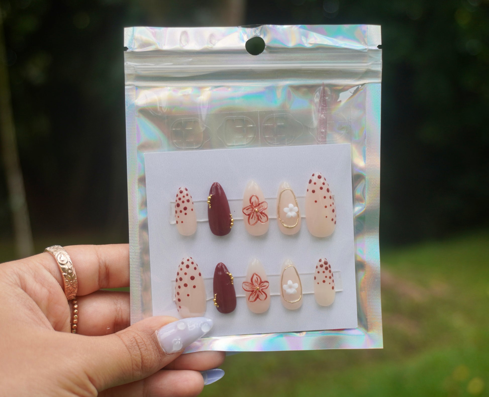 Size in millimeters - widest part of nail (Pinky - Thumb)