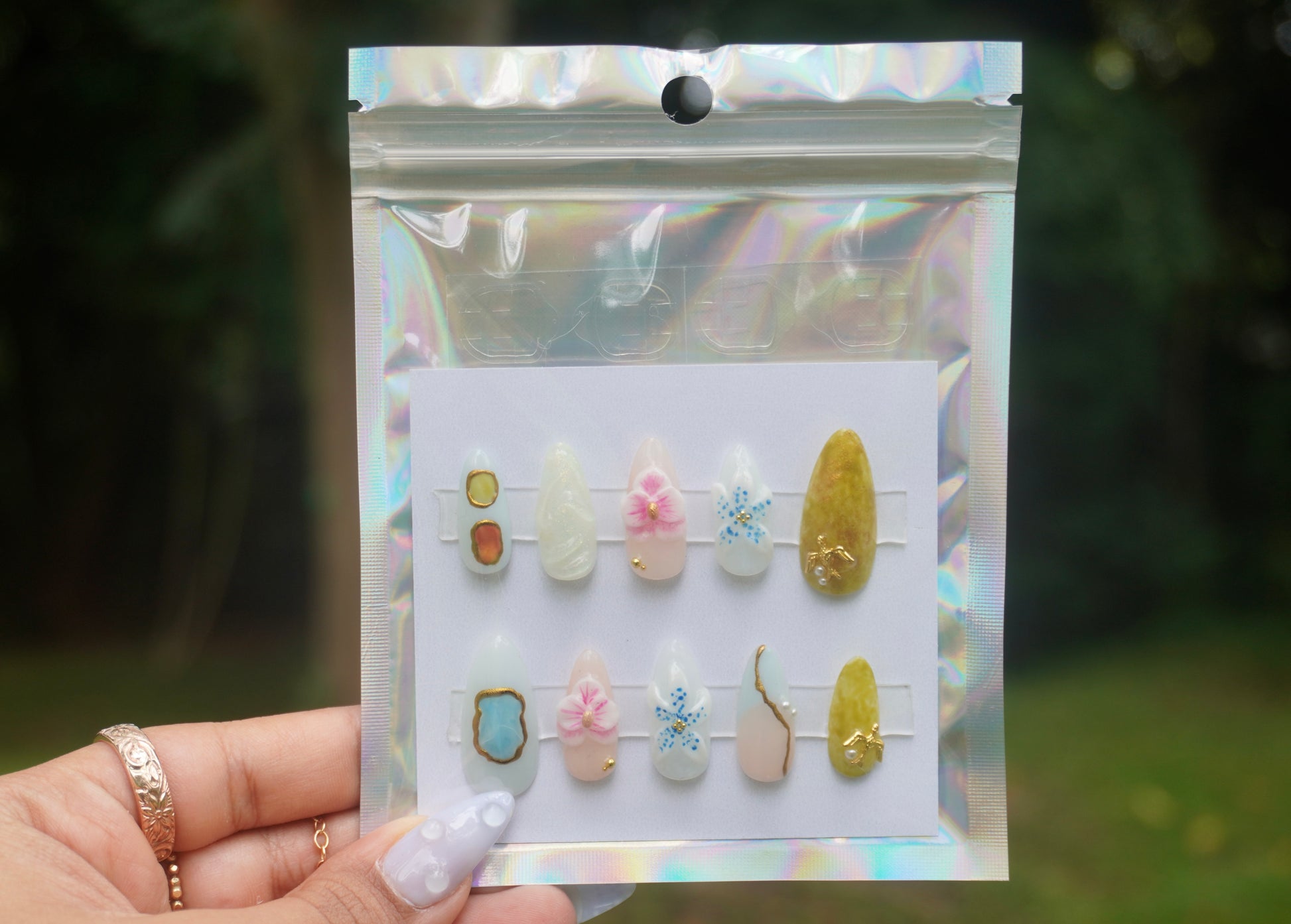 size in millimeters - widest part of nail (Pinky - Thumb)